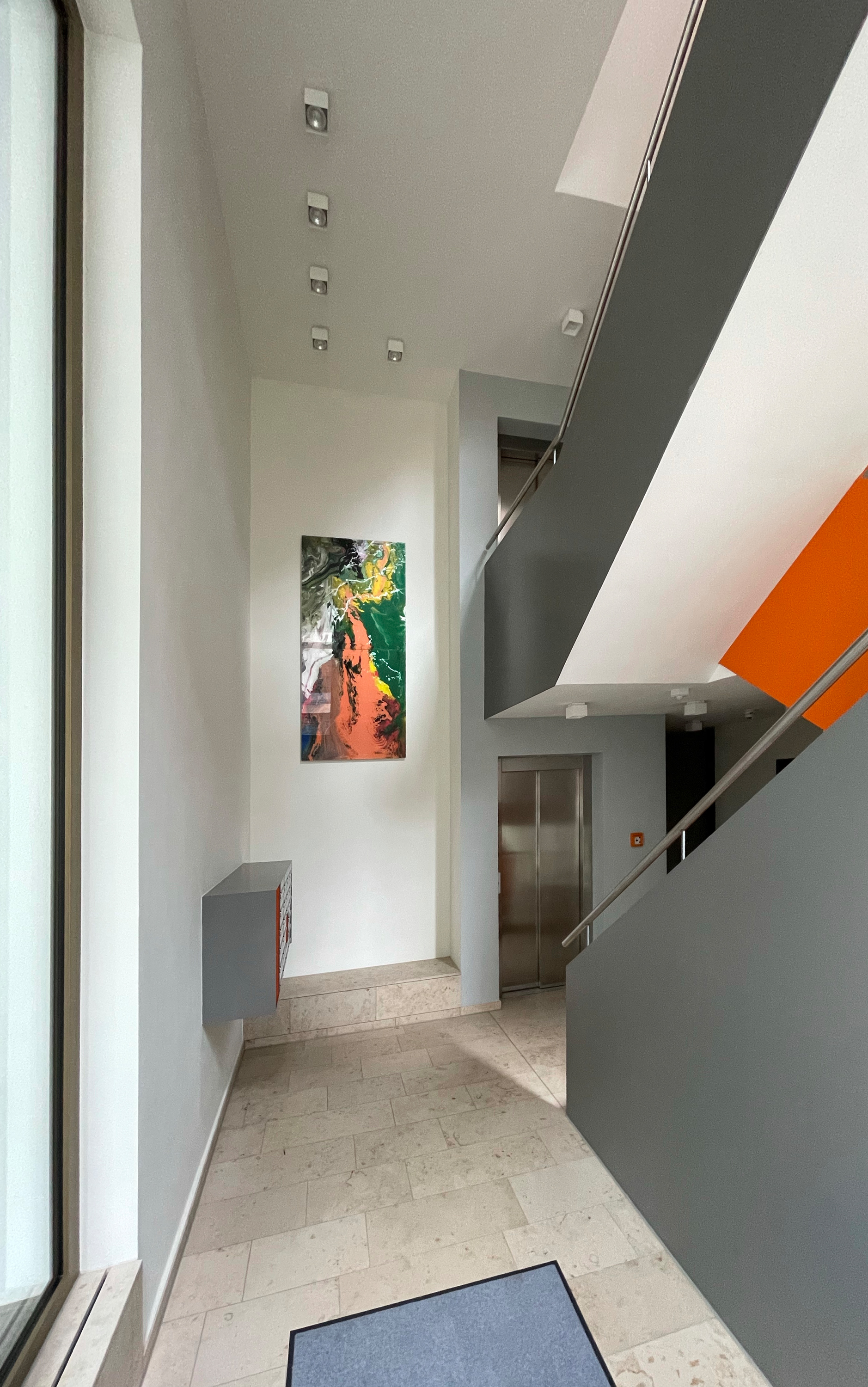 Für den ruhenden Verkehr wurde eine Tiefgarage errichtet, die 60 PKW-Stellplätzen sowie Fahrrädern Platz bietet.